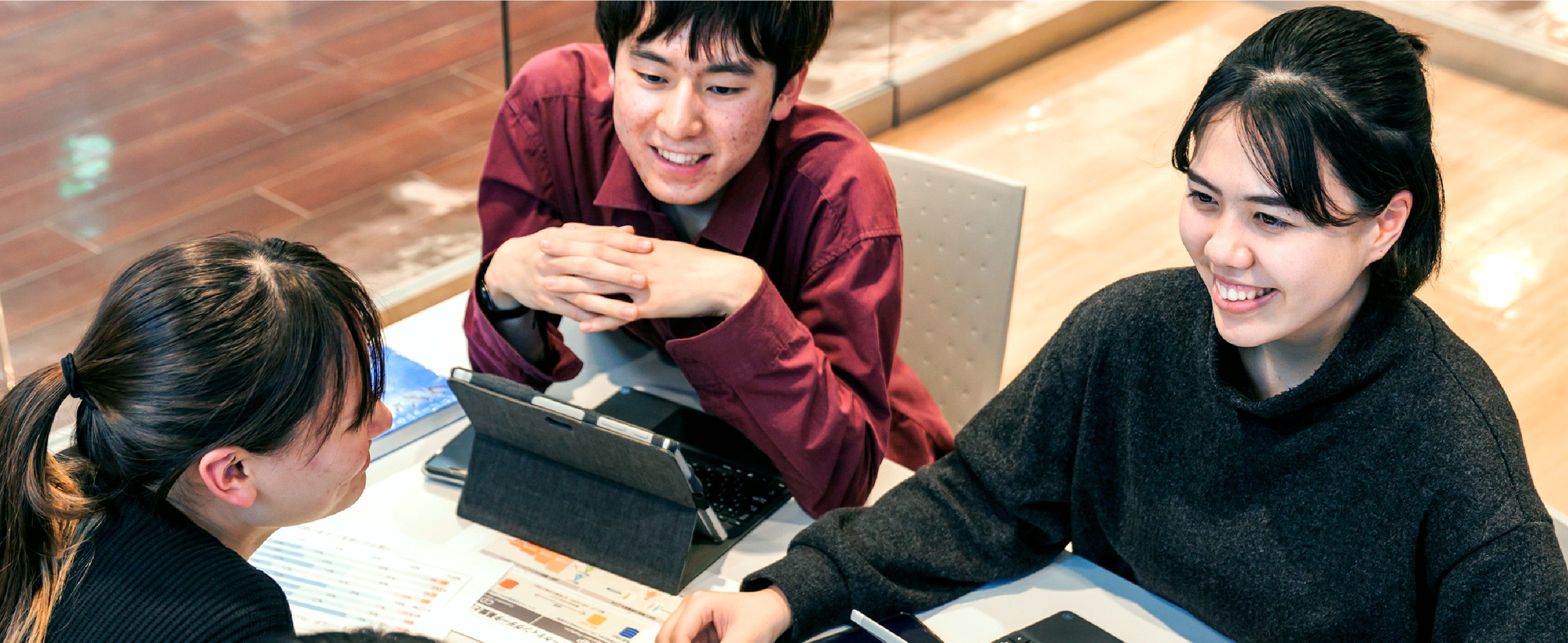 Students will enhance their employability through internships and become human resources who can collaborate and co-create in an international society with language skills and qualifications useful for business.