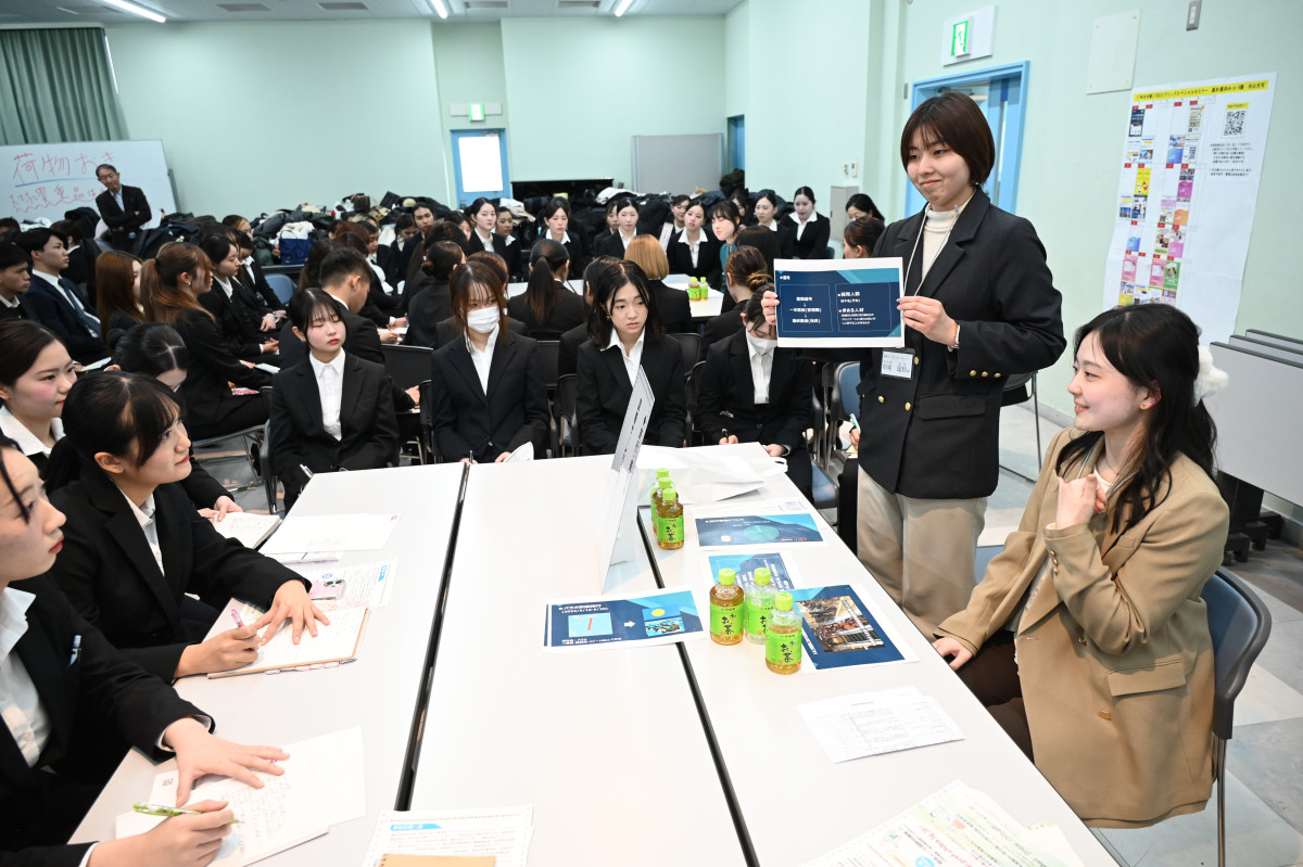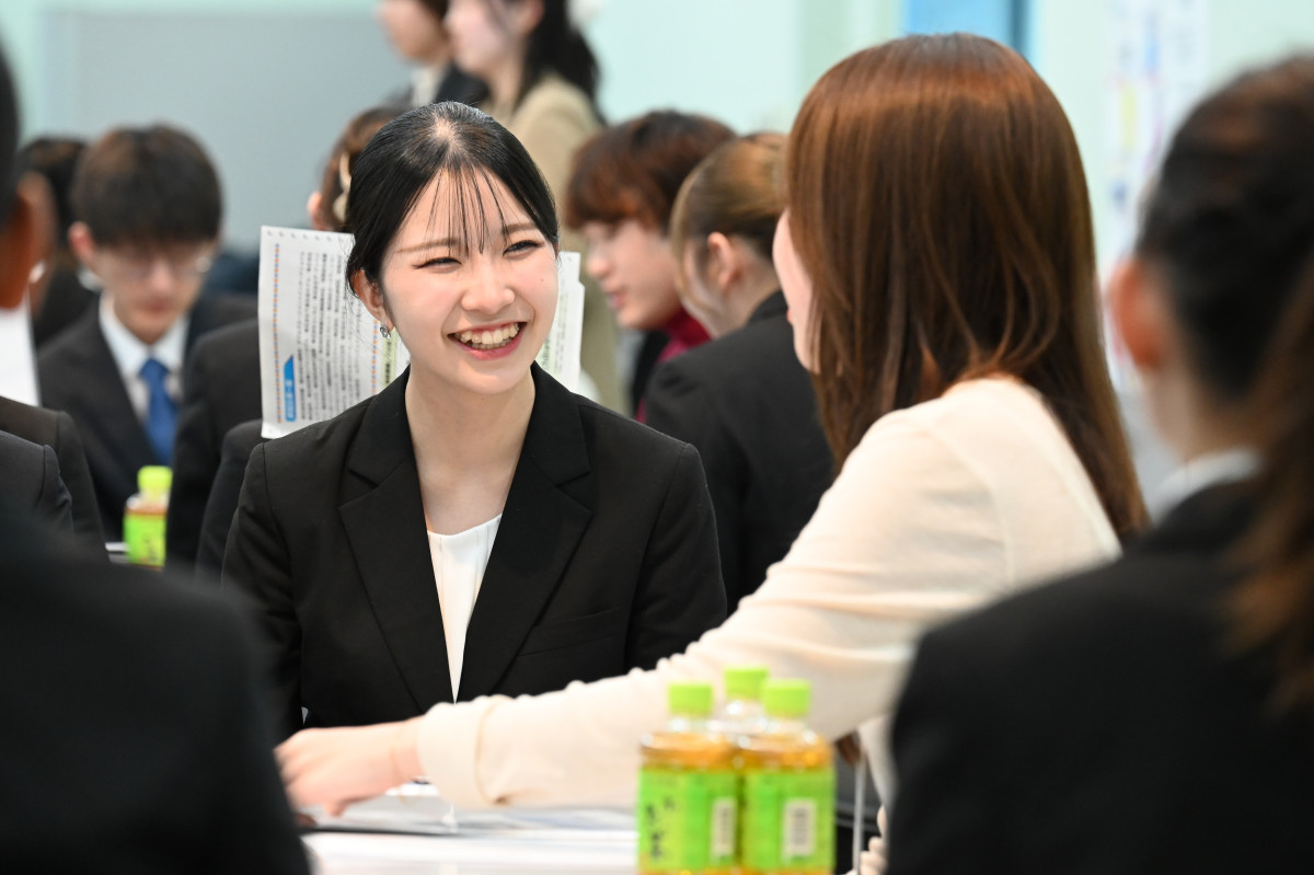 1月28日(水)と1月29日(木)の2日間にかけて、1年生を対象とした就職行事「就勝祭(しゅうかつさい)」を開催しました。1日目の「卒業生訪問会」では、卒業生が各ブースに分かれ、所属する企業や自身の働き方を紹介しました。企業の採用担当者には直接聞きづらい不安や悩みも、先輩になら相談できると毎年学生から好評のイベントです。2日目の合同企業説明会(オンライン実施)では、これまで卒業生の入社実績があり、学んだ外国語やビジネスの知識が活かせる企業に参加いただきました。多様な企業の説明を一度に聞ける貴重な機会となり、学生はこれから本格化する就職活動に向けて、モチベーションを高めたようでした。採用の早期化に備えるため、2月以降は昨年よりも2倍以上の企業を招き、学内での企業説明会を実施します。