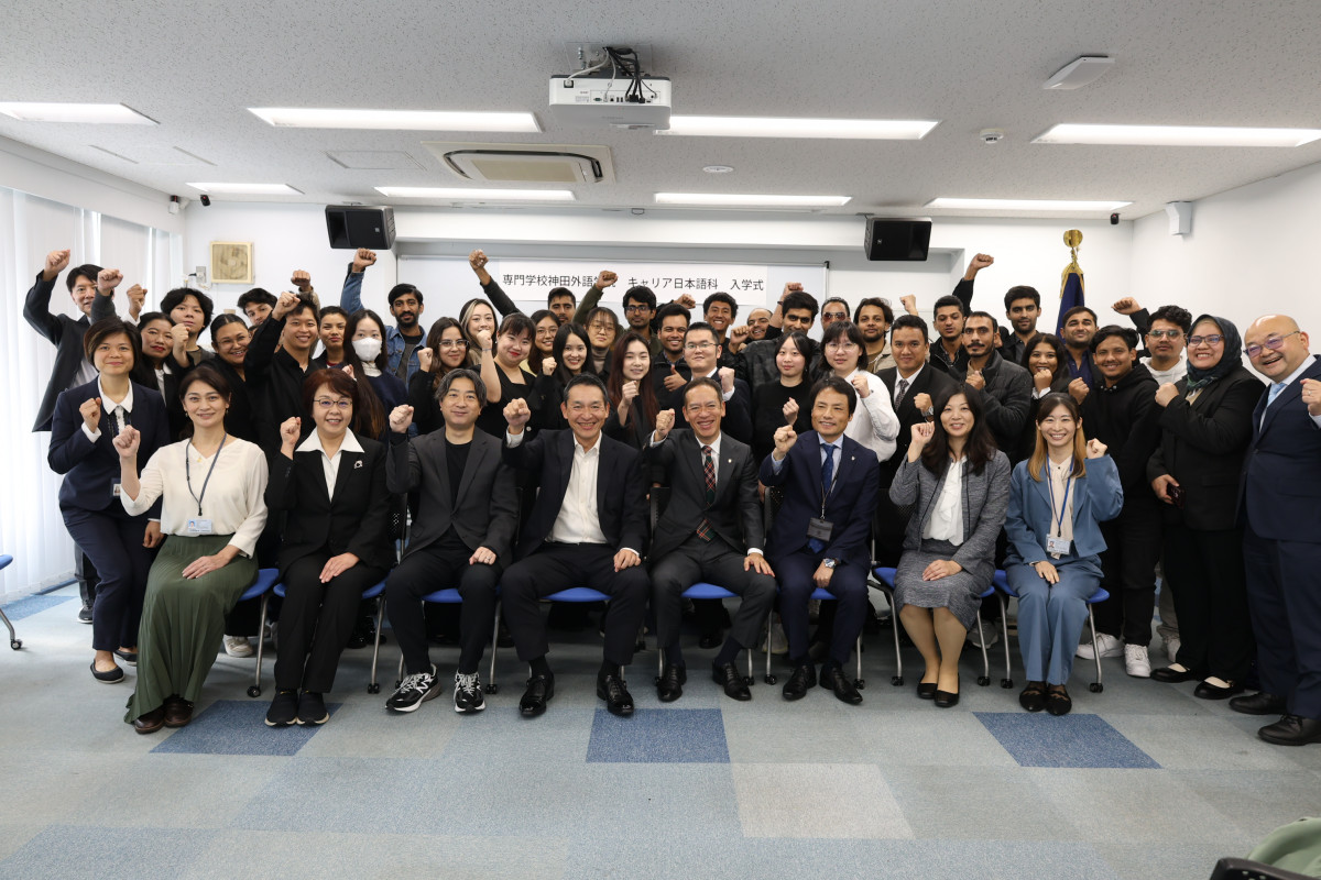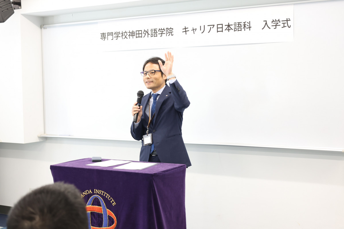 キャリア日本語科は第3期生となる2025年10月生の入学式を実施しました。学生たちの国籍内訳は中国5名、パキスタン2名、台湾1名、ネパール1名、メキシコ1名で、合計10名です。新入生からは、「日本と母国の架け橋になれる人材になりたい」との抱負の言葉がありました。在学生代表のBUSNITA SILVIA SARIさん(インドネシア出身)は、「大変な時もあると思いますが、一人で頑張るのではなく、みんなで一緒に頑張りましょう」と歓迎のメッセージを新入生に送ってくれました。新入生一人ひとりが実りある学校生活を送れるよう、教職員一同、心より願っております。