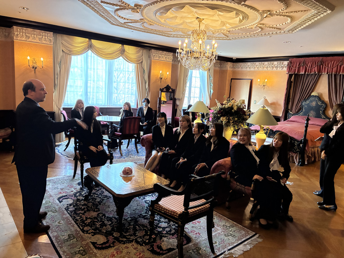 4月19日(日)から4月27日(月)にかけて、神田外語グループ国際研修センター「ブリティッシュヒルズ」(福島県羽鳥湖高原)にて、1泊2日の新入生オリエンテーションを実施します。ブリティッシュヒルズは、英語圏出身の外国人教員やサービススタッフが常駐し、本場の英国文化を体験できる施設です。オリエンテーションでは、学校生活の流れや充実したサポート体制の紹介に加え、英語でのアクティビティやチームビルディングに取り組みます。学院長はすべてのグループに同行し、講話を通して、神田外語学院での学びの厳しさとその先にある成長、「外国語習得に近道はない」というメッセージを学生一人ひとりに直接伝えています。学生たちは英語にふれ、異文化を感じ、互いを知り合う中で、これから始まる2年間の学生生活に向けて大きな一歩を踏み出します。