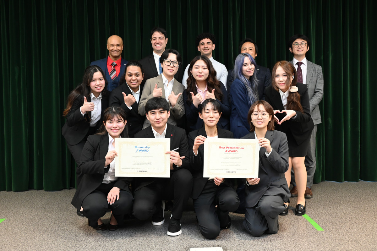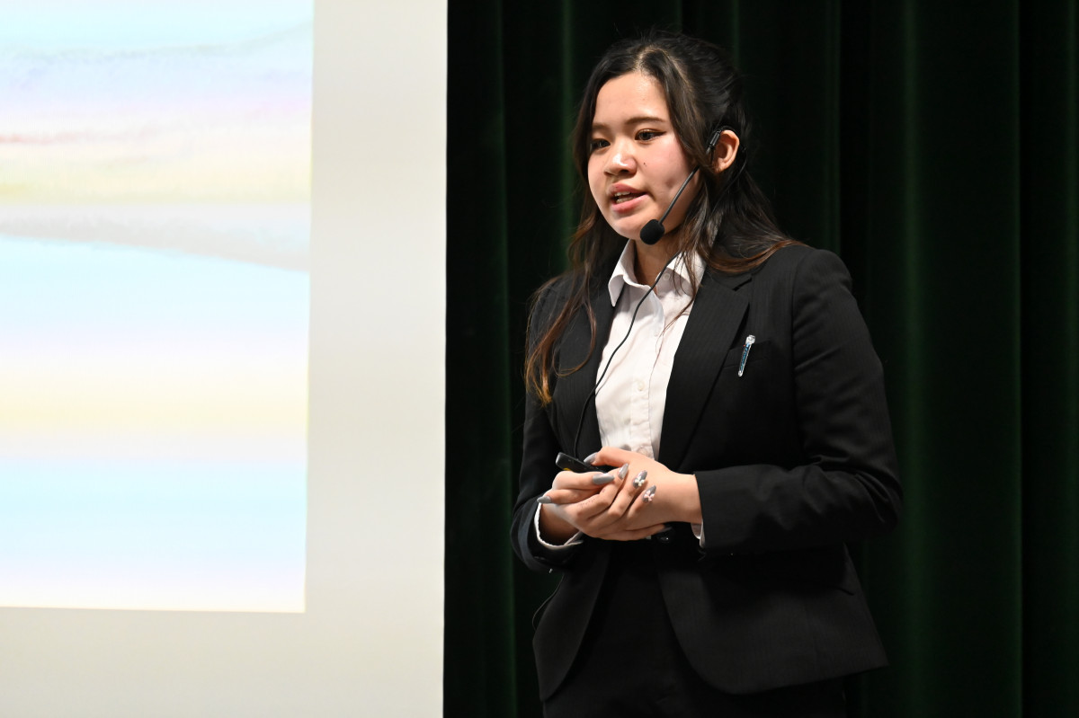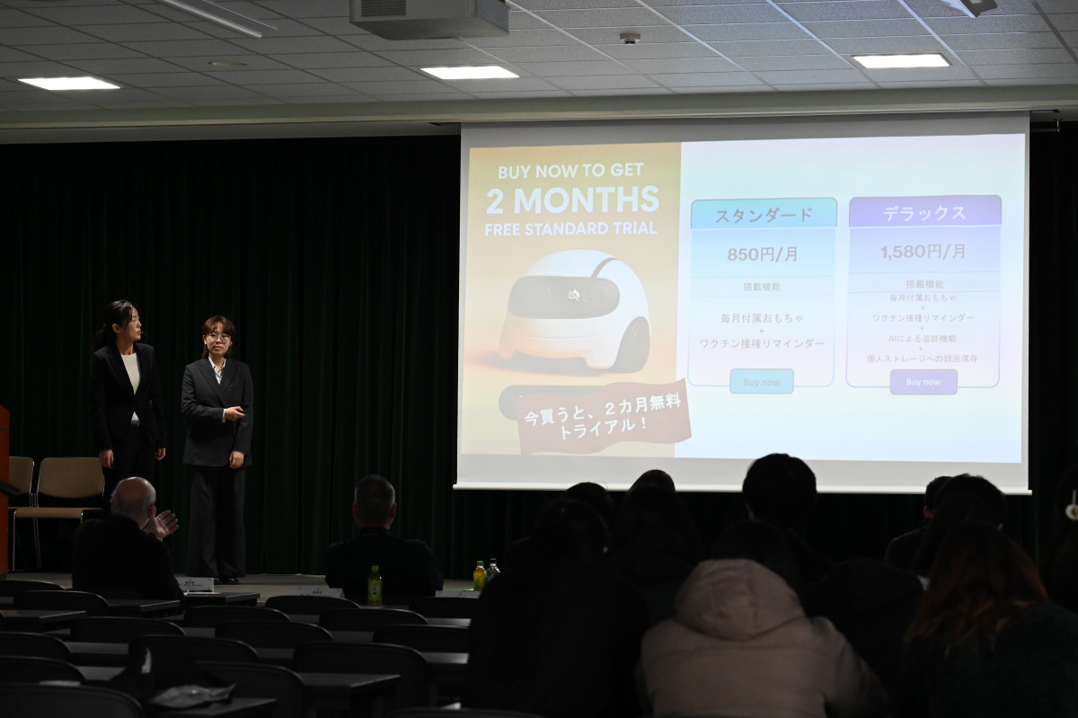 最優秀賞チームコメント:私たちの商品「AI paws」は、猫と飼い主の関係をより深く結びつけるAI搭載の猫用おもちゃです。なぜ今このビジネスに投資する価値があるのか、そして従来の猫用おもちゃと何が違うのかを明確に伝えられるよう、多面的な調査を行い、視覚的にも分かりやすい表現を工夫してきました。今回、最優秀賞を受賞した瞬間に最初に思い浮かんだのは、グローバルコミュニケーション科で共に学んできた仲間たちや、熱心に指導してくださった先生方への感謝の気持ちです。この2年間の学びがあったからこそ、今回の受賞につながったと感じています。