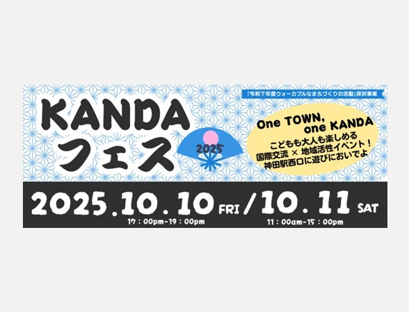 神田外語グループは、千代田区後援の下、神田駅西口商店街振興組合、内神田旭町々会、多町一丁目町会等の地域、及びNTT都市開発株式会社、イオンモール株式会社等の企業と連携し、地域共創イベント「KANDAフェス2025」を2025年10月10日(金)・11日(土)の2日間、神田駅西口エリアにて開催いたします。