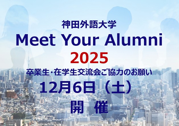 さて、神田外語大学ではキャリア教育センターと同窓会の共催にて、今年度第2回目となる「Alumni交流会」を下記の通り実施いたします。当イベントは毎年、同時期に定例開催していければと思いますので、本趣旨にご賛同いただける卒業生の皆様に、ぜひぜひご協力を賜りたく、ご案内申し上げます。