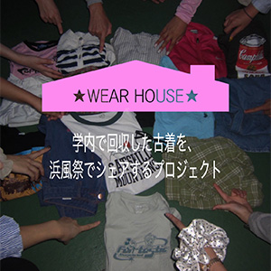 出店名 WEAR HOUSE 出店内容 古着譲渡会 出店コメント 3-101にて学内で集めた服を無料でお譲りしています!着なくなった服が、誰かのお気に入りに生まれ変わるかも。見るだけでもOK!気軽に立ち寄ってください! 団体名 豊田ゼミナール 団体紹介 浜風祭ではWEAR HOUSEをはじめ、豊田ゼミナール主催の企画が盛りだくさん!25日は野外映画企画「Shibafu de night」、26日はPickuisのファッションショーがあります!こちらもお見逃しなく!