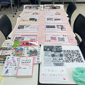 出店名 SaladBowl√1 出店内容 ヒューマンライブラリー&展示会 出店コメント 多様性、グローバル化、共生社会などなど、最近耳にすることが多いワードがたくさんあると思います!それがどんなことなのか、私達が考えるべきことは何か、いろんな話をぜひ聞きに来てください♪ 展示物もあるので覗きにくるだけでも大歓迎です♫ 団体名 SaladBowl√1 団体紹介 SaladBowl√1は、海外ルーツを持つ人と持たない人が交流し、互いに励まし合える場所を作ることを目的としています。普段抱える思いや悩みを共有し、多様な視点を学びながら、社会の課題についても考えていくサークルです。