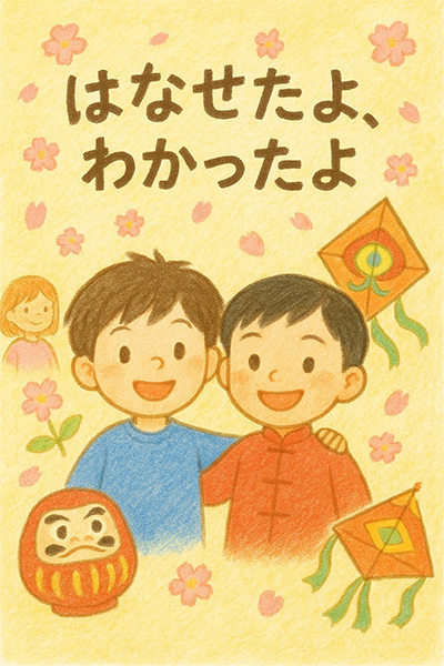 出店名 日本語×中国語 ことばシアター 出店内容 日本語と中国語による読み聞かせ動画の上映、プロジェクト成果の展示 出店コメント 植村ゼミではAIを使って、3歳向けの『ボクのなきごえ これであってる?』、3〜6歳向けの『ヒーローになりたい!ドンくん』、7〜9歳向けの『はなせたよ、わかったよ』の3つのオリジナル絵本を制作しました!浜風祭では、各作品の中国語と日本語での読み聞かせ動画を上映します!また、絵本の制作過程や幼稚園等で実施させていただいた読み聞かせ会の様子を展示にて公開いたします。絵本が好きなお子様も、中国語に興味がある大人の方も、ゼミの活動に興味のある学生の皆様もぜひお越しください! 団体名 植村ゼミ 団体紹介 中日翻訳・中国語教育をテーマとしているゼミです。