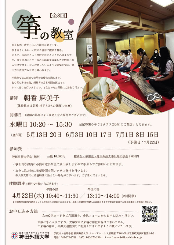 箏の教室〈全8回〉※本年度は火曜日から水曜日に変更になります。