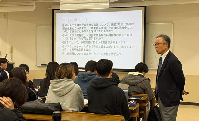本講義を通じて、学生たちは中東和平問題の複雑さや平和構築の難しさ、そして日本が果たすべき国際的役割について考える貴重な機会となりました。
