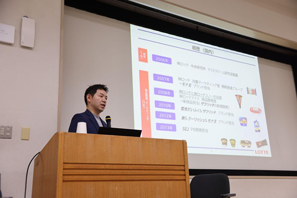 (株)ロッテ・グローバルマーケティング部長が講演 海外事業のリアルと戦略を学生に語る