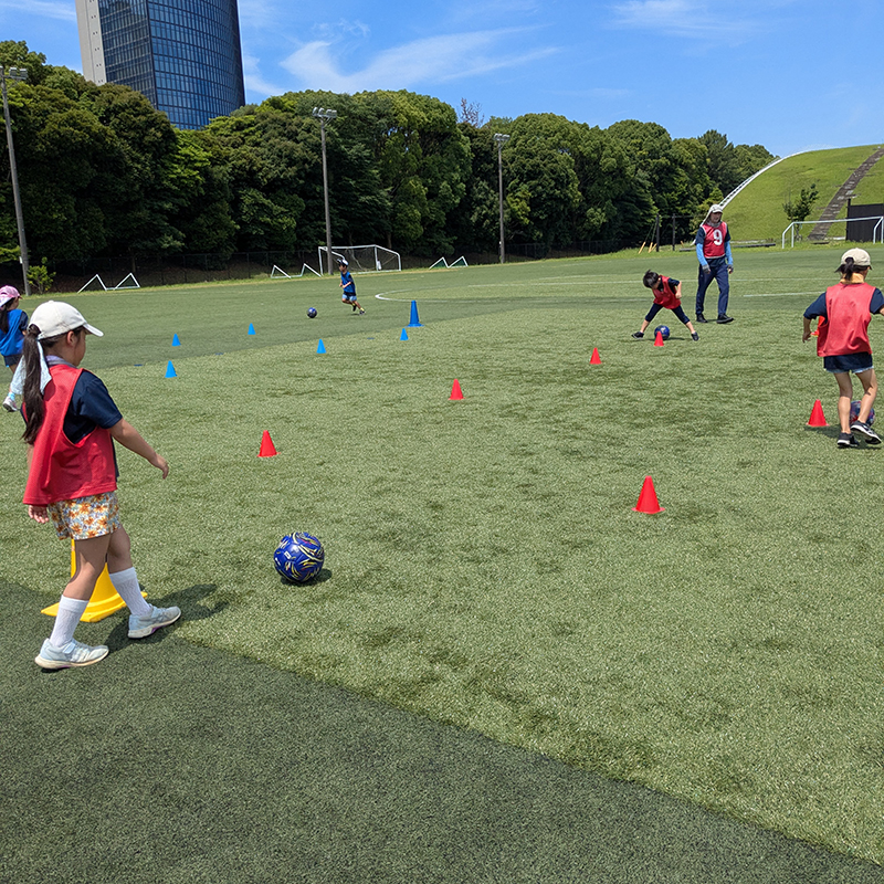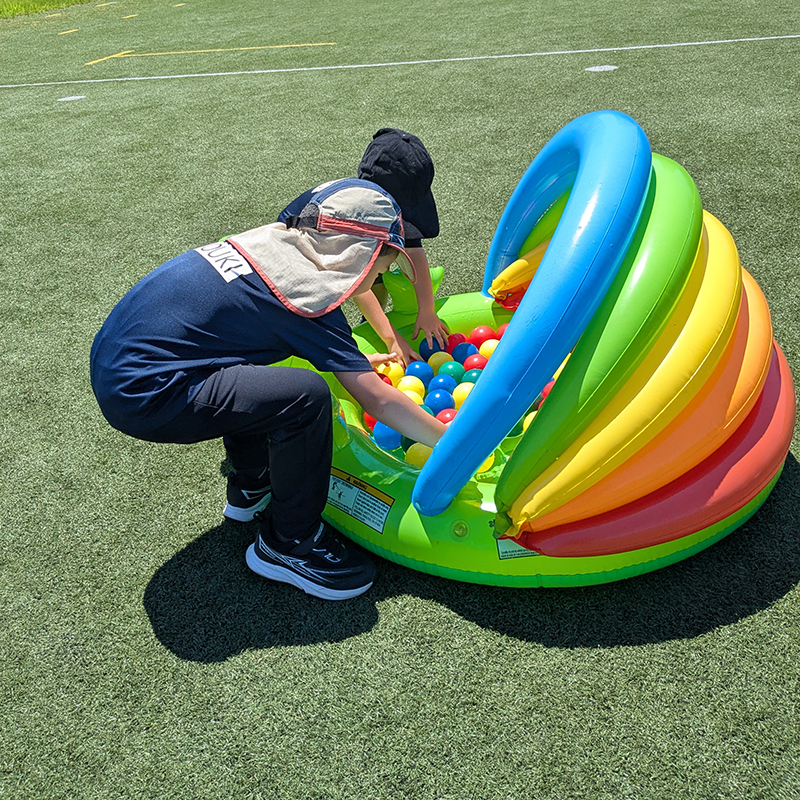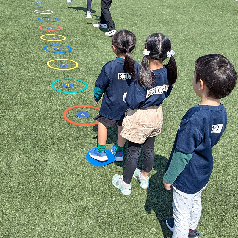 幼児クラスは、暑い真夏以外は人工芝グラウンドで思い切り体を動かしました。