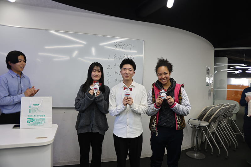 空港に隣接する立地を活かし、成田空港内で多古米の試食を実施する企画を提案しました。また、本学の語学力を活かし、英語・韓国語・タイ語など多言語で多古町の魅力を発信するSNS運用案も提示し、インバウンド需要の取り込みを強調しました。