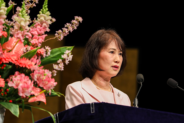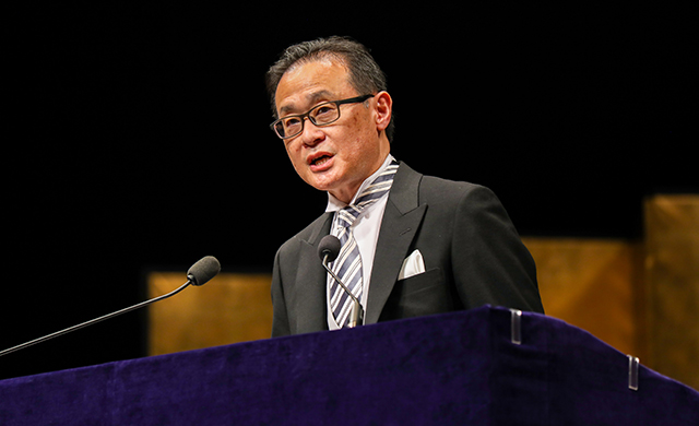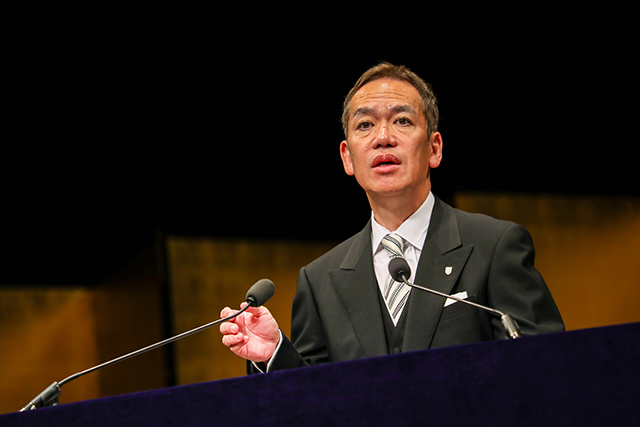 芦沢真五新学長は式辞で、「一時的なスキルや知識の修得よりも常に新しい知識や情報を身に着け、継続し学び続ける力がより大切であり、本学ではそのような教育・学習環境が整備されていること、本学の素晴らしい教育システム、教職員の指導を活用し、生涯学び続ける力を養ってほしい、充実した学生生活を送っていただきたい」といったメッセージを贈り、式辞を締めくくりました。