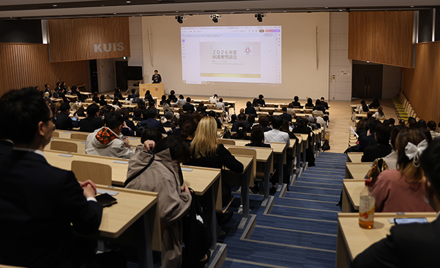 佐野元泰理事長は祝辞にて、「AIの急速な進展により知識が容易に手に入る時代においては、単なる情報量ではなく、「国際力」と「経験に裏打ちされた力」が人の翼となる。経験から学び、自らの物語を持っていることで人としての輝きとなる。そのための環境がある本学では、失敗を恐れず、挑戦を重ねていただきたい。本学の理念『言葉は世界をつなぐ平和の礎』にも触れながら、「世界に繋がる言葉を学び、自らの足で世界に触れ、経験を積み主体的に切り拓く4年間としていただきたい」と新入生たちを激励されました。