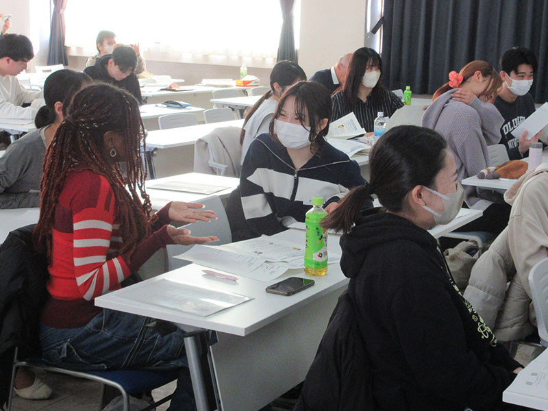 また、医療と語学という異なる専門性を持つ学生同士の交流も大きな成果を生んでいます。休憩時間や実習を通じ、お互いの大学生活や授業内容を共有し合うことで、自身の学びを客観的に捉え直す貴重な機会となりました。医療系の知見に触れた本学学生と、語学の必要性を実感した保健医療大学の学生が、互いに刺激を与え合う姿が印象的でした。